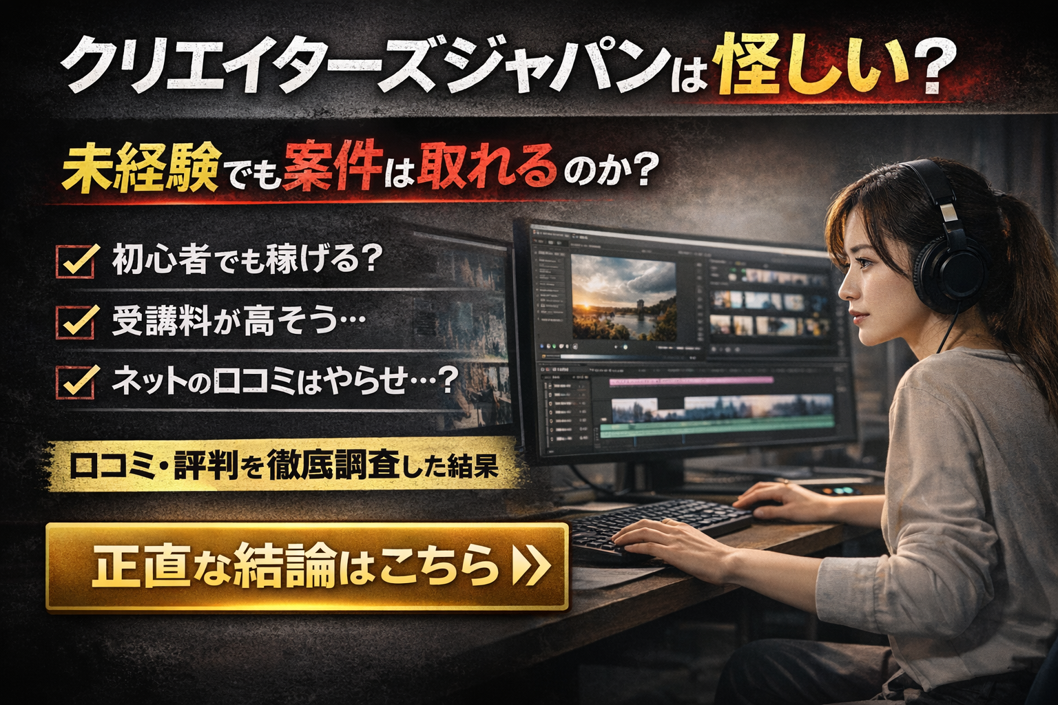 はじめに:クリエイターズジャパンって怪しくない? 「動画編集で副業を始めたい」「在宅ワークで収入を得たい」と考えているあなた。ネットで調べていると「クリエイターズジャパン」という動画編集スクールの名前を目にしたのではないでしょうか。...